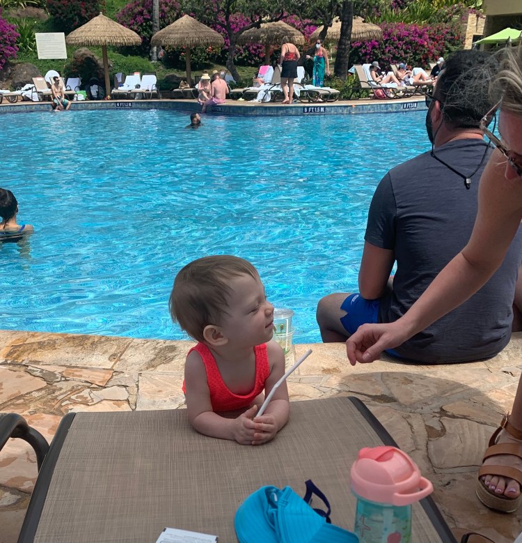 We stayed at the Hyatt Regency Maui Resort & Spa which I would highly recommend to families and couples traveling to Lahaina. The rooms are recently renovated and are beautifully done. The staff were all very helpful and accommodating for our large group (we traveled with my husband’s co workers). The pools are awesome and I hope to go back someday to experience the swim up bar (it is closed due to COVID). There is a separate kids pool with fountains and animals they can climb on in the water. I don’t remember the specifics as our daughter is not old enough to swim around on her own and mostly clings to us while we stand in the water.