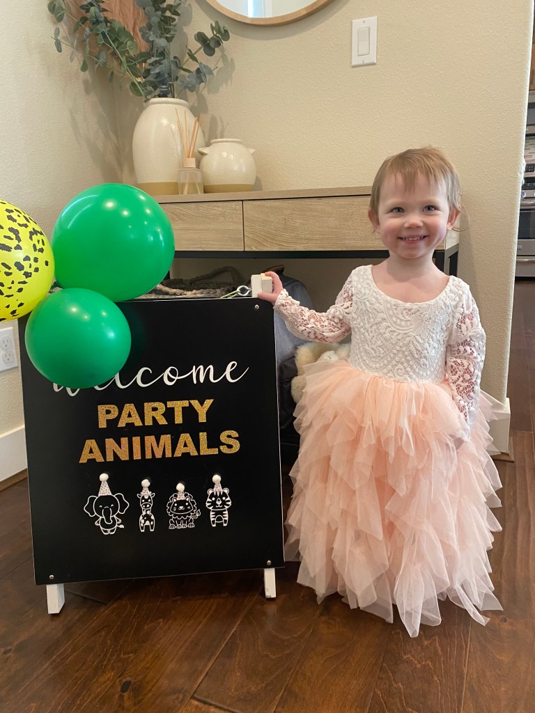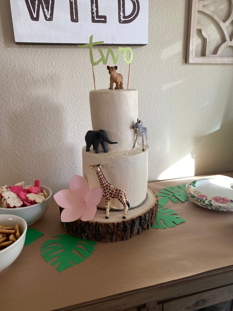 For my daughter’s 2nd birthday, I went for a Wild theme to match her wild personality! I wanted to keep things simple since I was DIYing the majority of the decor and food. I also opted for a “crazing table” since the guest list included adult family members. I do think at this age, an adult-only party allows the birthday kid to enjoy the festivities without being overwhelmed by other children trying to jump in and “help” with blowing out the candles, etc. That’s not to say that other young family members or close family friends kids are discouraged from being there, just that we didn’t invite “friends” she was starting to make at dance class, daycare, etc.