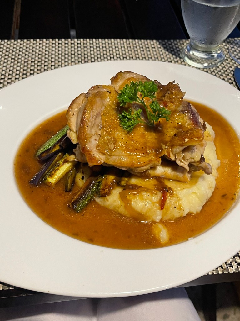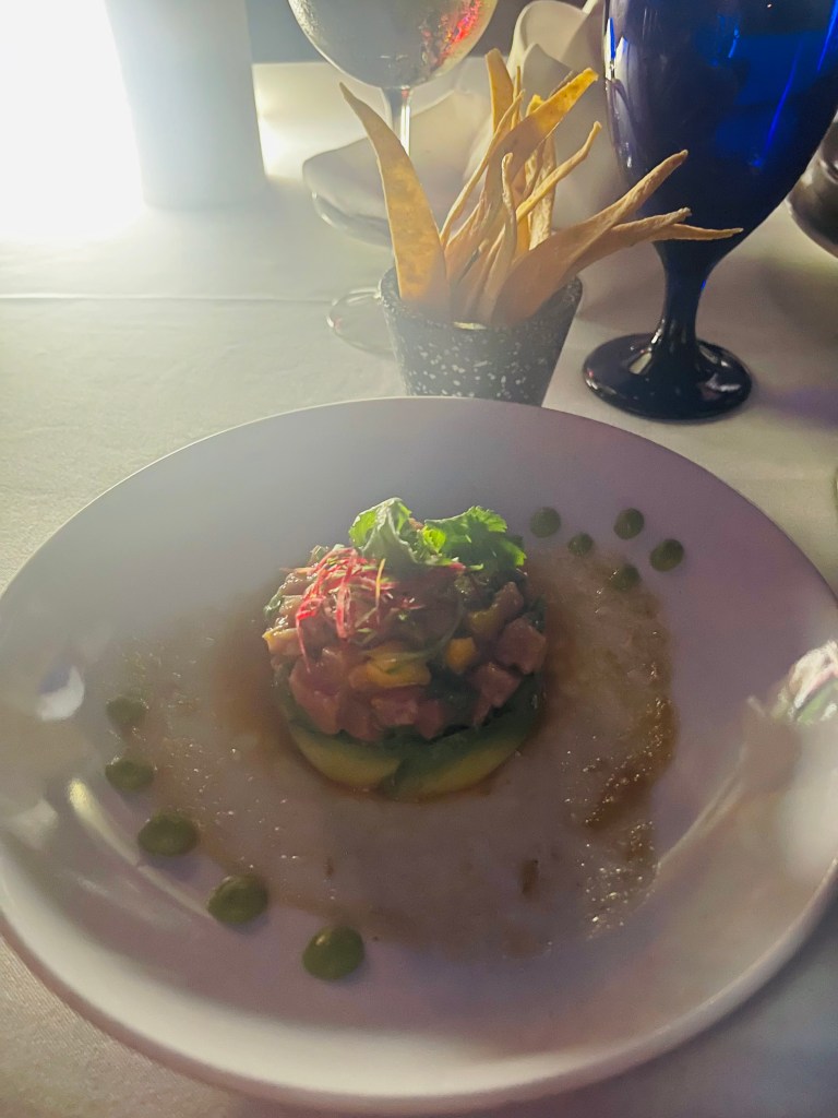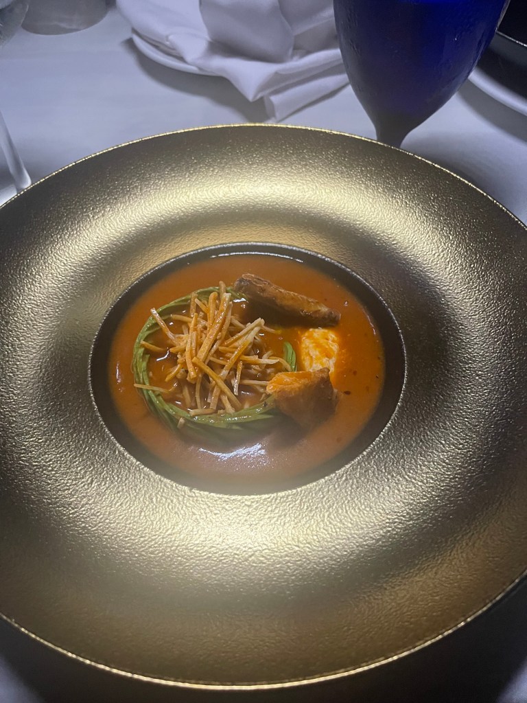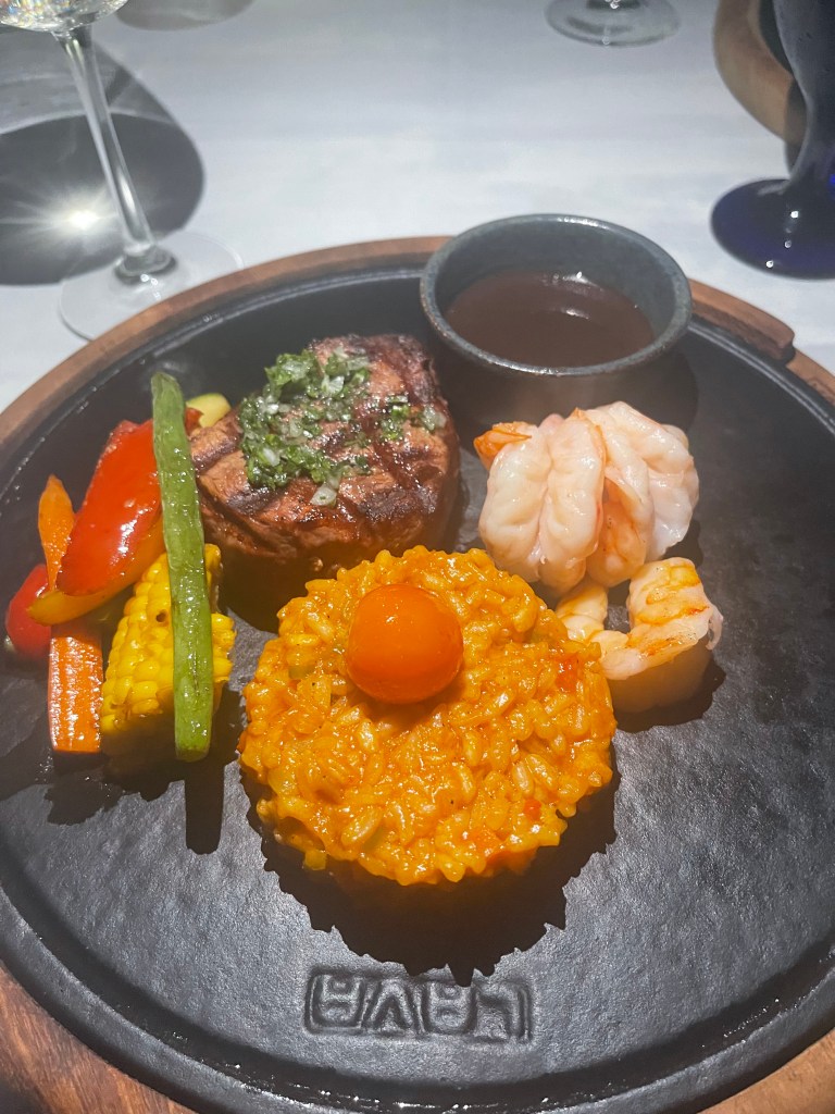 The food itself was exquisite, though we quickly learned to pace ourselves as each course was generously portioned. By the time we reached the mouthwatering surf and turf main course, we were already quite satisfied. Nevertheless, we managed to savor every bite of the remaining courses before the staff surprised us with the grand finale.
