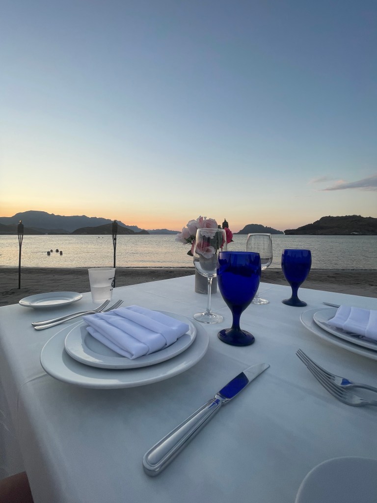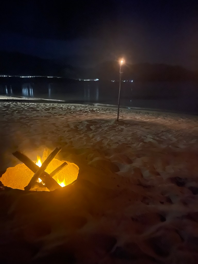 To celebrate our anniversary, we treated ourselves to a private dinner on the beach, a separate indulgence from the all-inclusive package. It was an incredibly romantic affair—a five-course meal under the soft glow of candles and tiki torches, with the gentle sound of waves in the background.